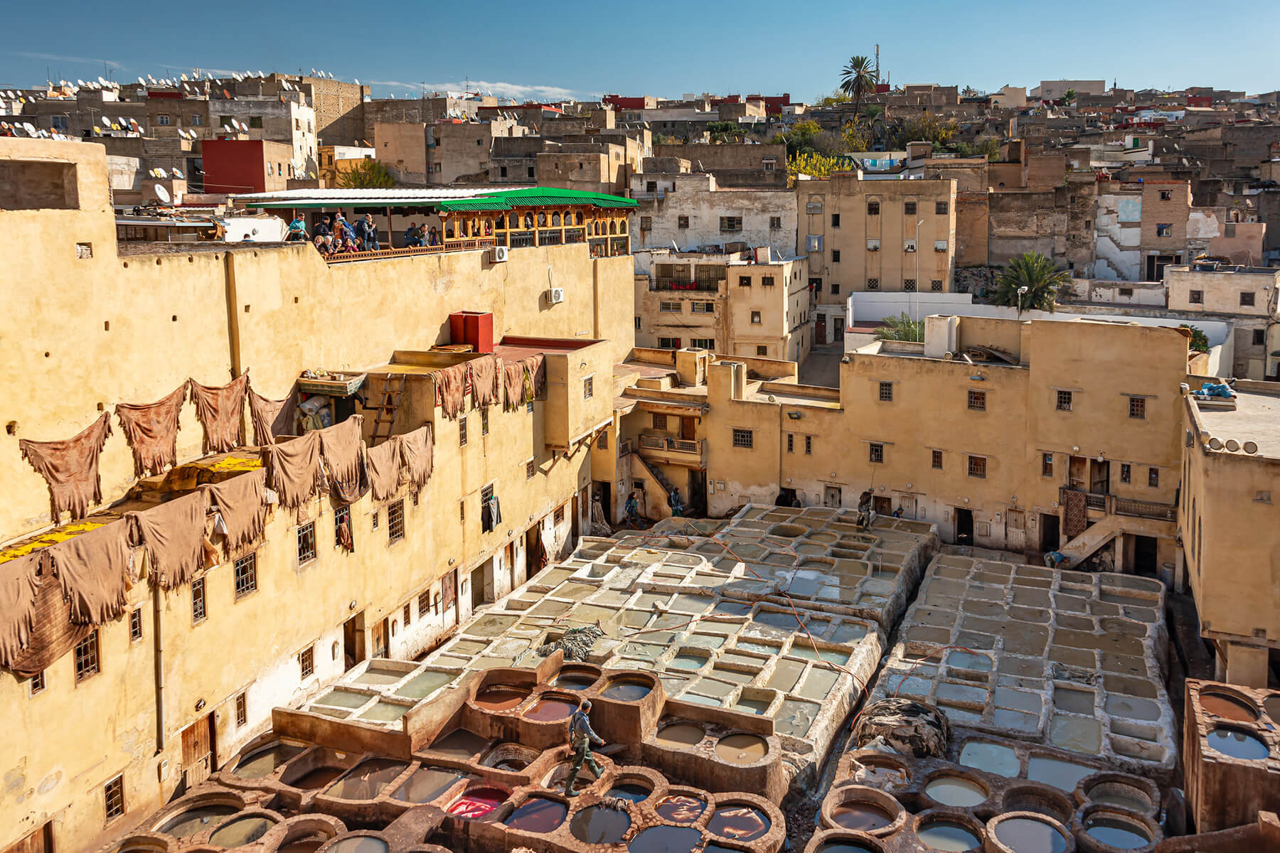 Fès gehört zu den vier marokkanischen Königsstädten und gilt als geistiges Zentrum des Landes. Die zum UNESCO-Welterbe zählende Medina ist eines der größten autofreien Stadtzentren der Welt – ein faszinierendes Labyrinth aus rund 9.000 Gassen, Werkstätten und Basaren, das bis heute das traditionelle Marokko spürbar macht.